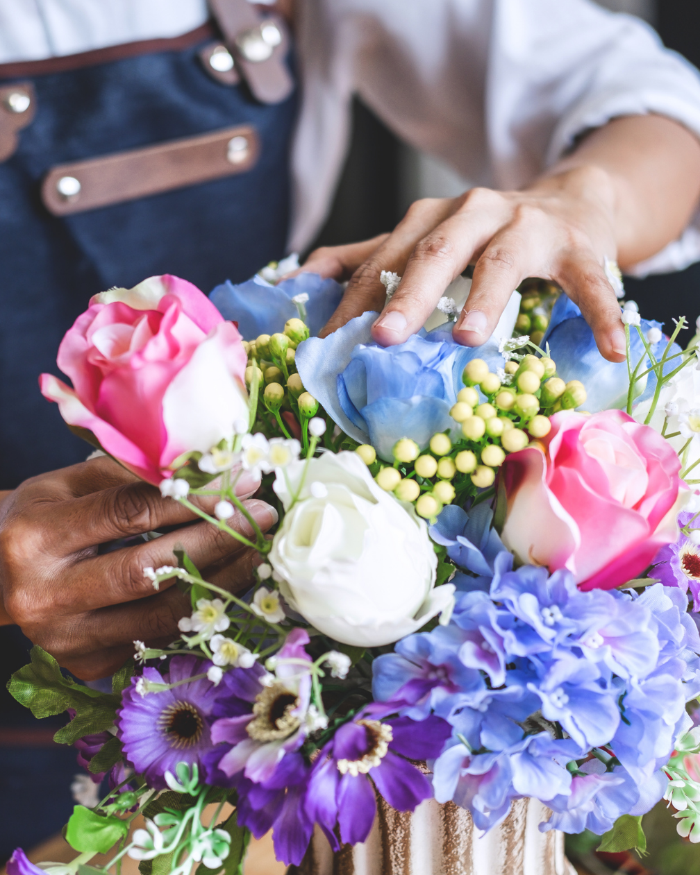 Now the fun begins! Put on your florist hat and design your own masterpiece. Mix, match, and play with your flowers and greenery — there’s no wrong way to create something beautiful.
